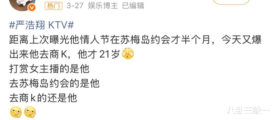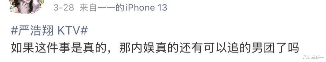 一时间,网友们你来我往、争论不休,讨论度直接拉满,热搜榜上“严浩翔 KTV”的词条很快登顶榜一,点进去全是密密麻麻的讨论,看得人眼花缭乱。路人这边,大多抱着纯吃瓜的心态,一边感慨内娱瓜田大丰收,一边对严浩翔产生质疑,觉得滤镜碎了一地,纷纷留言“原来养成系也不过如此”、“那内娱还有可以追的男团吗”;