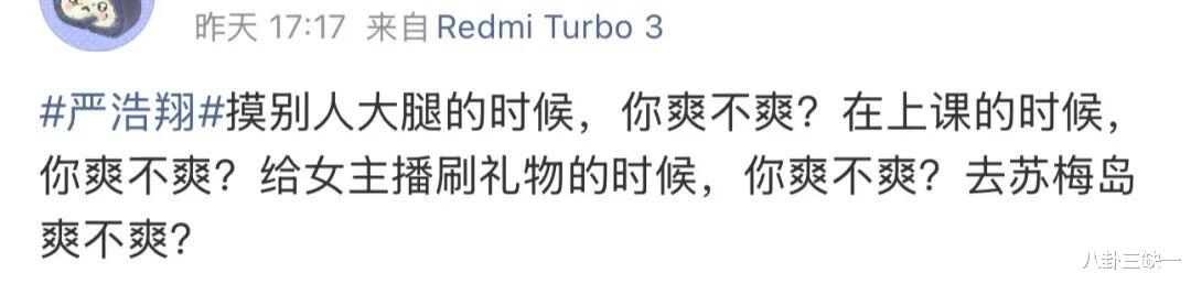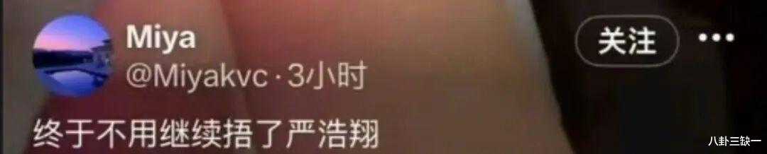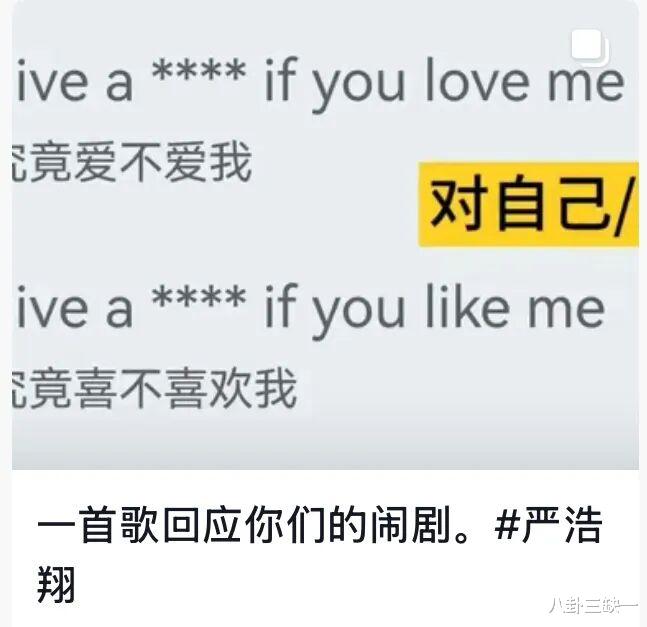 被牵扯的队友粉(也许还有团粉)也不少,大家一边怕自家心肝被连带抹黑,一边又无奈看着风波越闹越大,只能满心焦灼地等待严浩翔出来给个明确说法,制止一下愈演愈烈的舆论。但又迟迟看不见他的回应,一会儿暗戳戳通过分享歌曲表态,试图用歌词传递情绪;一会儿悄咪咪委托律师发个告黑,针对部分极端言论走法律程序。