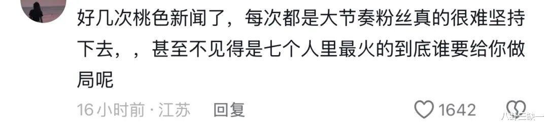 要么已经心累的粉丝,忍不住吐槽他已经不是第一次卷入桃色新闻了,每次都是闹得满城风雨的大节奏,每次都要爱他的人为他冲锋陷阵。“甚至都不见得是七个人里最火的,到底谁要处心积虑给他做局”。