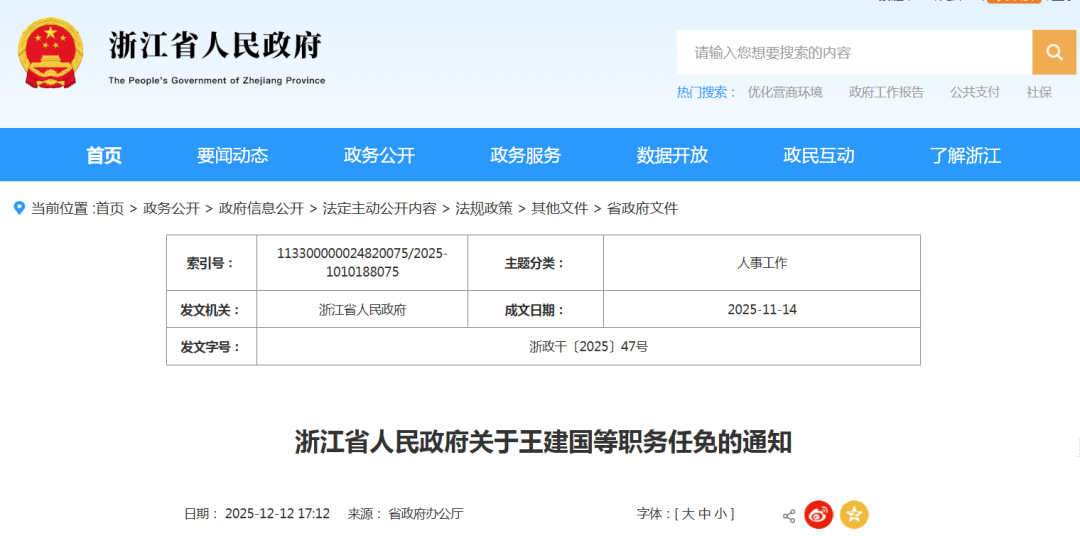 12月12日,浙江省人民政府发布《关于王建国等职务任免的通知》,宋厚辉任浙江农林大学副校长。