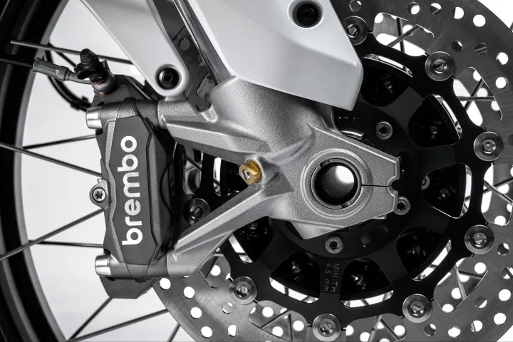 在制动系统上,2026 款进行了一个很有趣的变动,前煞车盘直径从原先的 320mm 缩小到了 305mm,虽然尺寸缩水,但搭配 Brembo M4.32 一体式卡钳与全新的直推总泵,反而换来了更好的手感回馈。