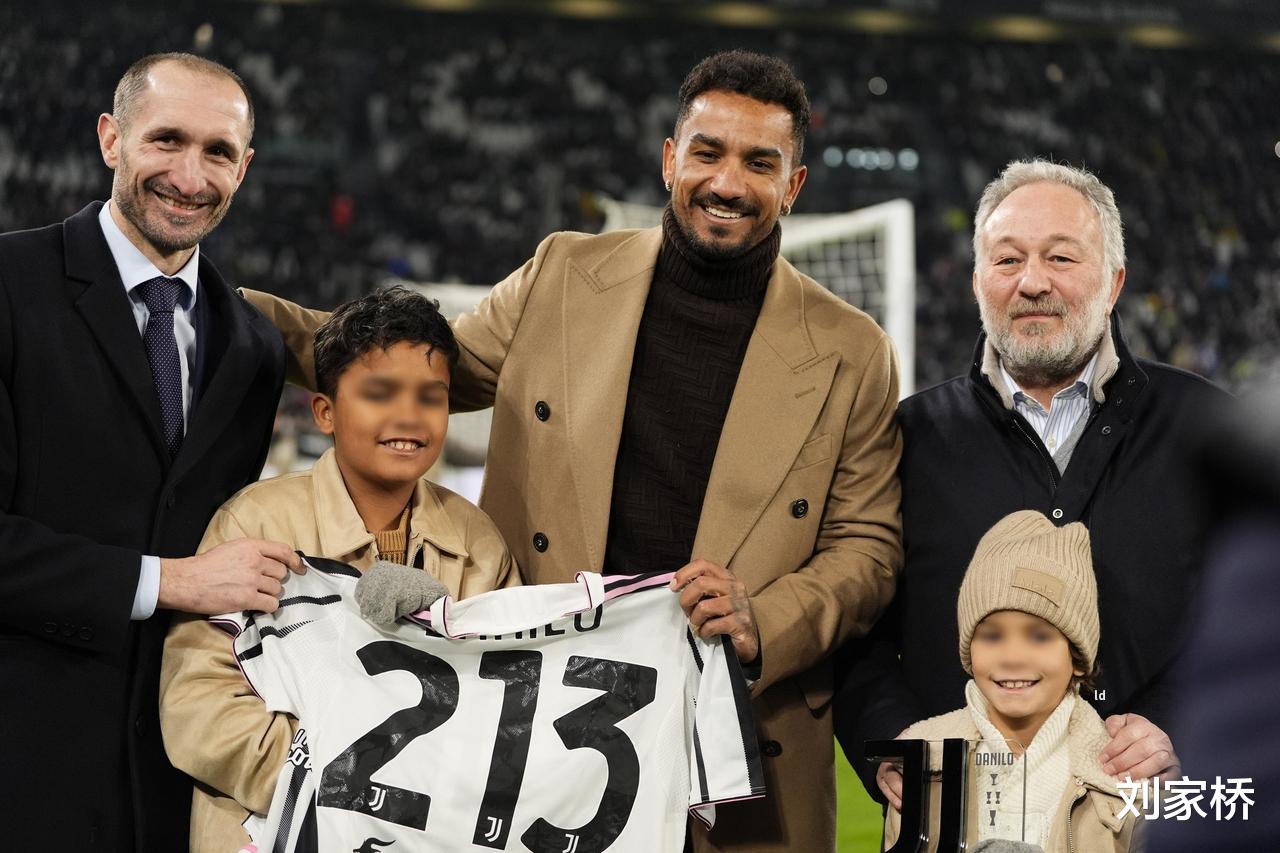 赛前,前尤文球星达尼洛亲临现场,和尤文名宿基耶利尼合影留念,赢得尤文球迷阵阵掌声。