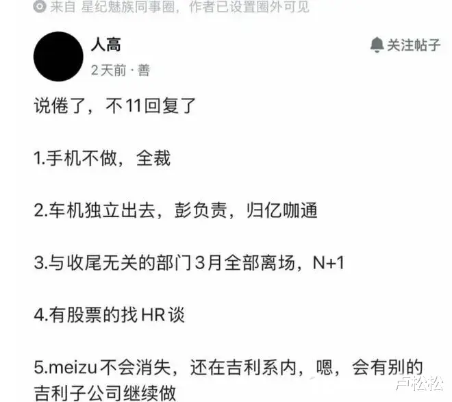 (1)1月份就部爆料,魅族在大量清退外包人员,23项目实质停摆。