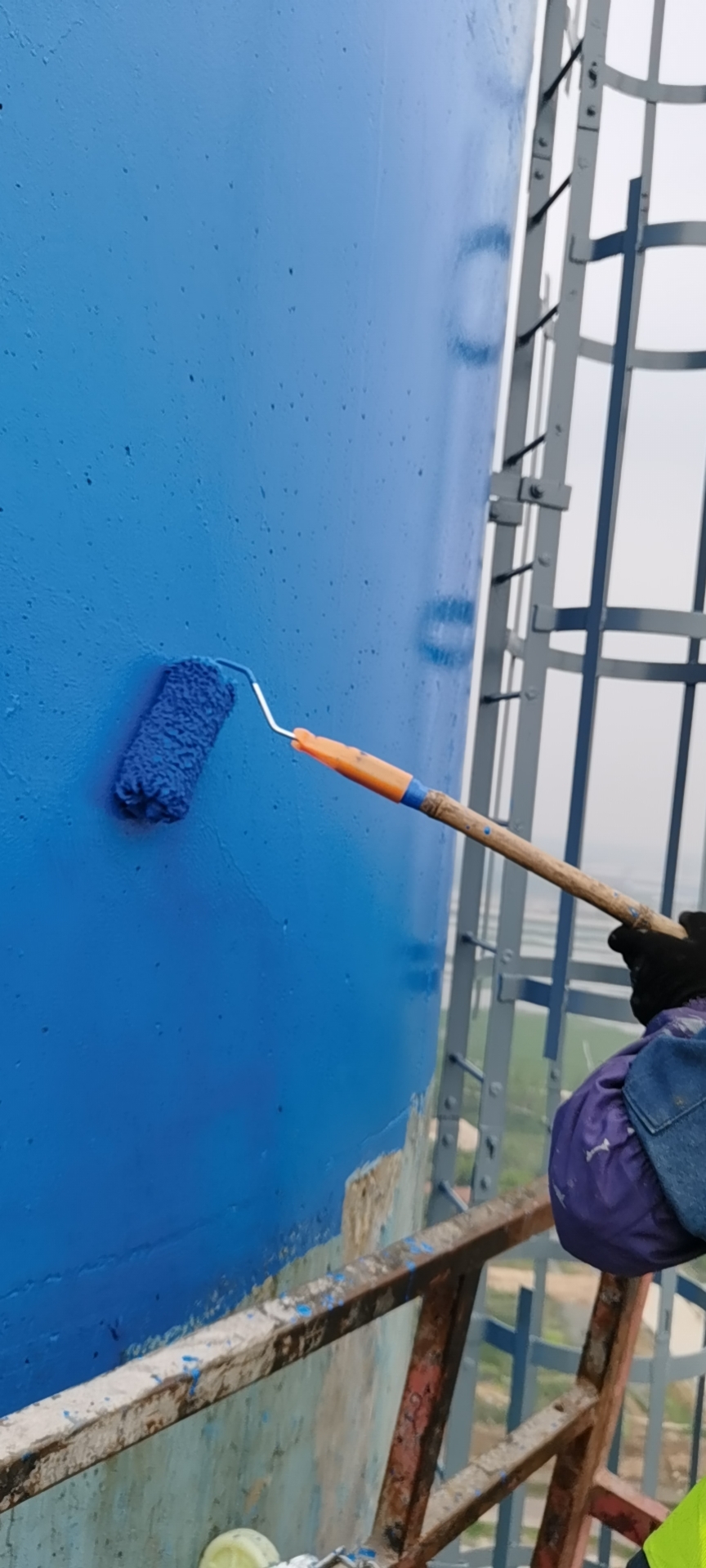 2.基层处理难度大:烟囱表面长期积累烟灰、油污,清理不彻底易致涂层鼓包、脱落;混凝土筒身吸水快,钢结构锈蚀隐蔽,基层处理质量直接决定防腐效果。