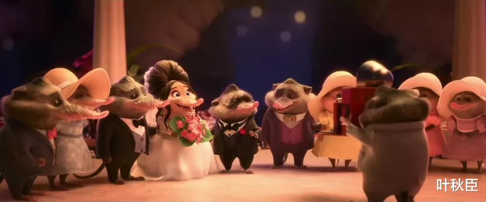 同时继续第一部对《教父》的致敬,鼩鼱大先生又一次出场,这次除了他的女儿外,还有新角色小孙女,全家都穿得相当粉嫩。值得一提的是,鼩鼱的寿命普遍很短,所以在尼克赞扬孩子长得快时,这一家人的反应才会如此强烈。