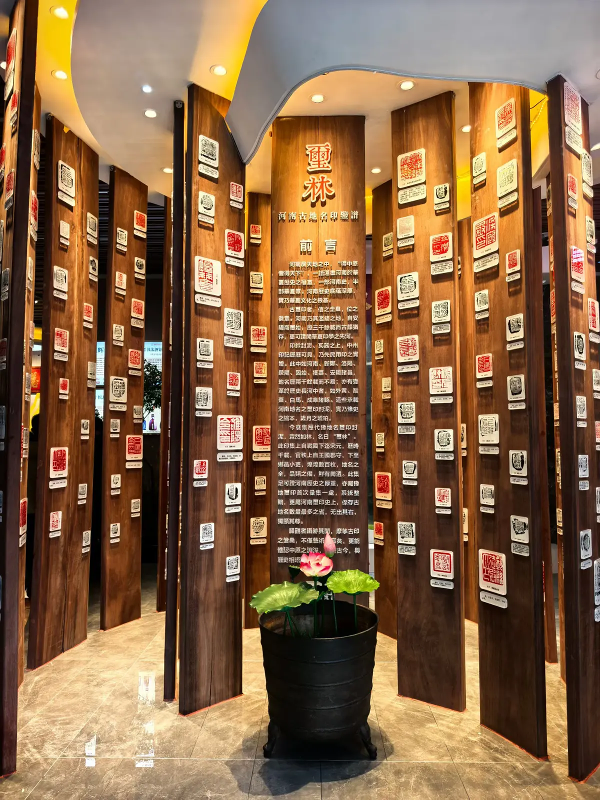粮者书法酒馆的玺林,展示现今最全的河南省古地名印玺,河南人都可以在这里找到家乡在古代的称谓,并同时鉴赏玺印艺术。