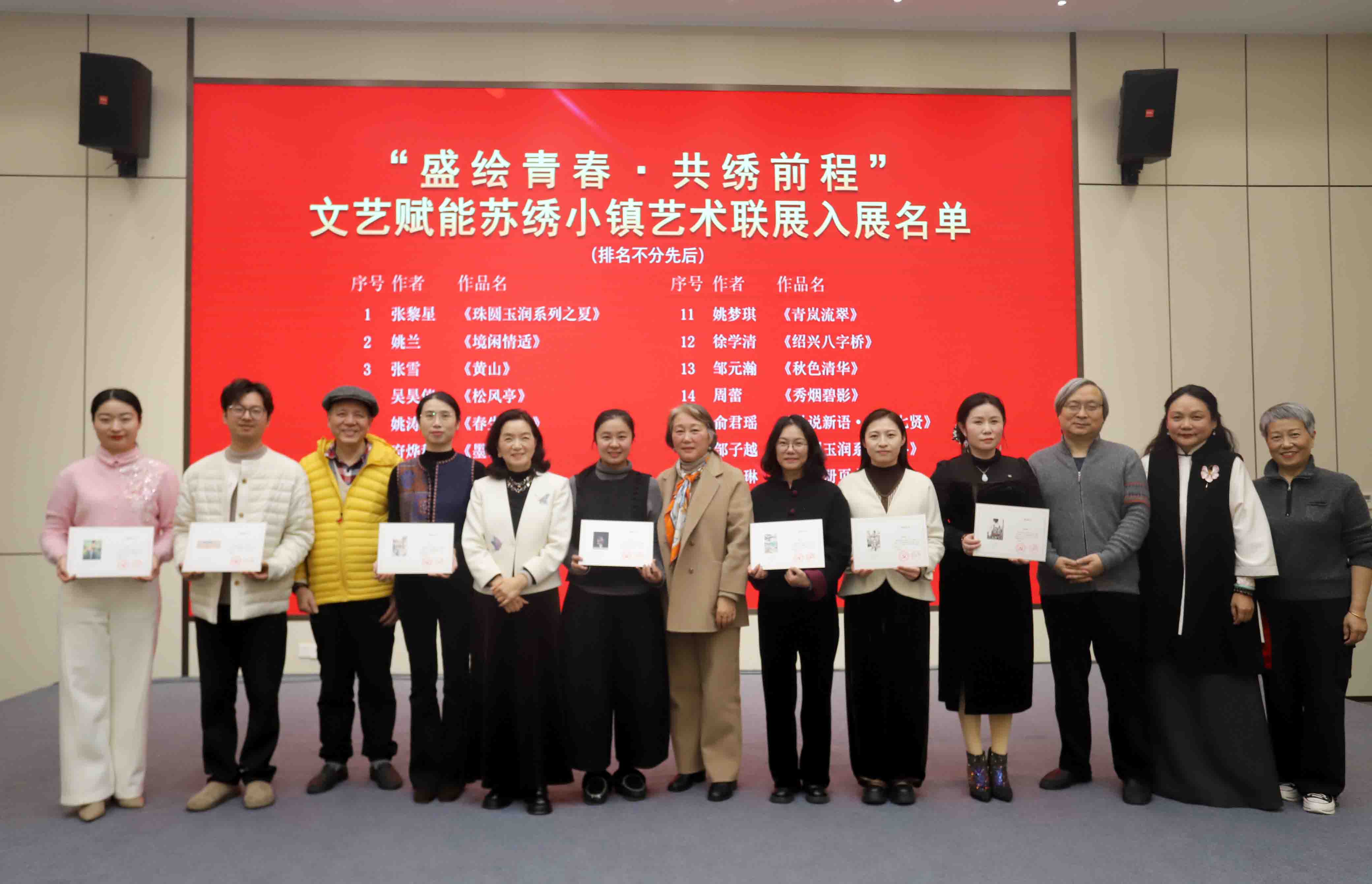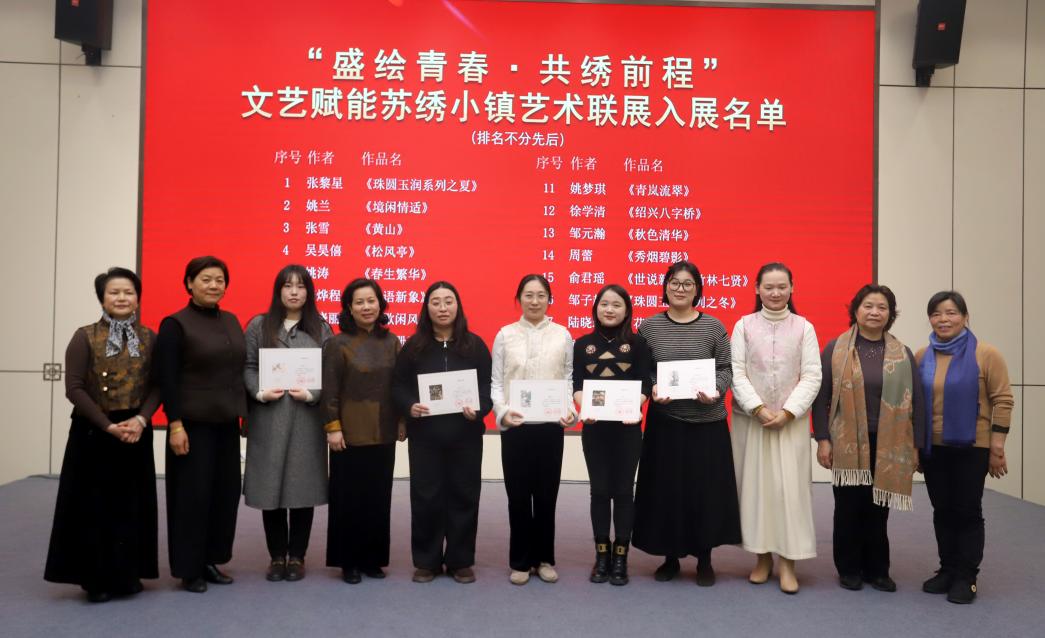 市民协老领导叶正亭、副主席吴越晨、邹英姿等嘉宾为一批拥有跨界创新作品入选“盛绘青春•共绣前程”文艺赋能苏绣小镇艺术联展的苏绣青年传承人颁发荣誉证书,勉励青年绣者守正创新、薪火相传,为苏绣非遗传承注入青春活力与时代动能。