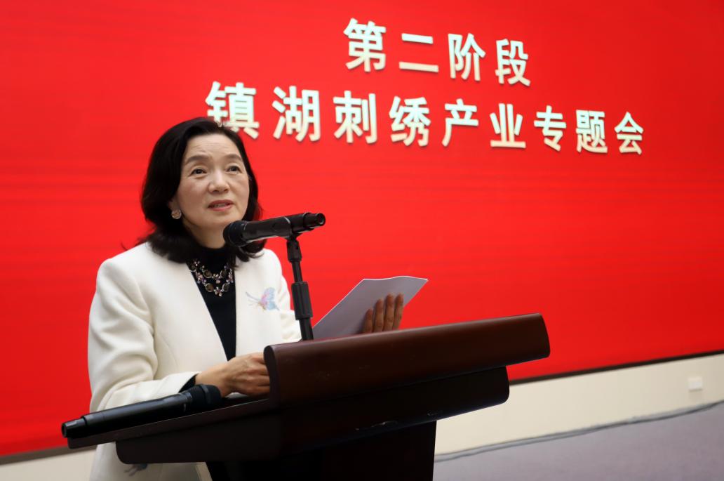 大会第二阶段的镇湖刺绣产业专题会由姚建萍会长亲自主持。为进一步规范镇湖刺绣市场秩序,强化知识产权保护,推动苏绣产业高质量健康发展,刺绣协会针对当前刺绣市场存在的乱象进行了调研摸底。姚建萍会长对调研了解到的行业知识产权侵权、低价恶性竞争、网络经营失范等情况进行了汇报,特别强调“镇湖刺绣不仅是一门艺术,更是承载千百人生计、彰显地方文脉的支柱产业。产业要行稳致远,必须走合法、合规、健康的康庄大道。”苏州市虎丘区人大常委会党组成员、镇湖街道党工委书记周经纬,苏州市虎丘区人民法院党组副书记、副院长吴宏,苏州市虎丘区人民检察院党组成员、副检察长邱黎黎,苏州高新区市场监督管理局党委委员、副局长沈佳尧等相关方面领导应邀出席大会,为刺绣产业规范发展把脉定向、进行专业指导。