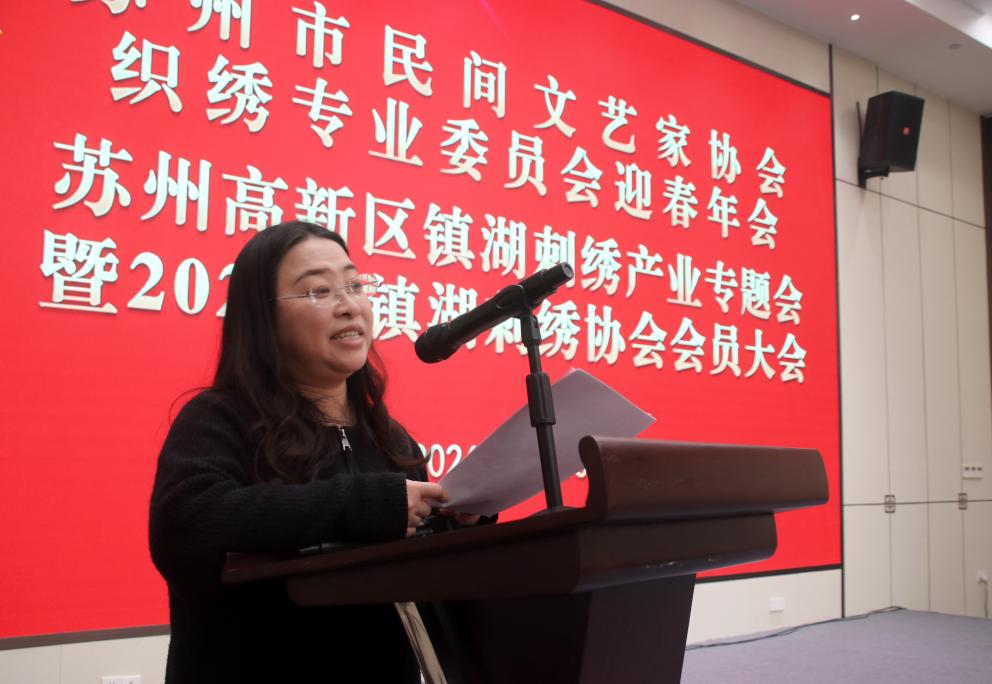 大会第一阶段的总结表彰会由苏州市民间文艺家协会织绣专委会秘书长、苏州高新区镇湖刺绣协会秘书长裘星主持。会议审议通过了会长姚建萍作的苏州高新区镇湖刺绣协会2025年度工作报告和苏州市民间文艺家协会织绣专委会副会长、苏州高新区镇湖刺绣协会轮值会长姚惠芬作的2025年度财务报告。