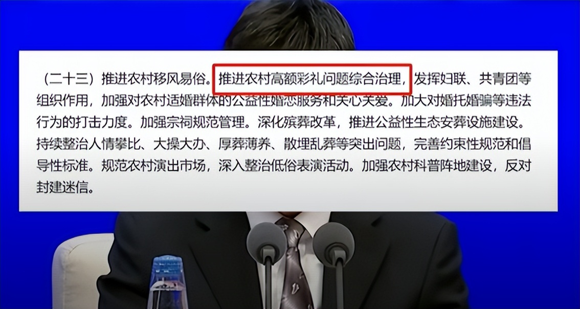 正因如此,国家近年来不断出手整治天价彩礼。2021年起,中央一号文件多次点名这一问题,多地整治已初见成效。