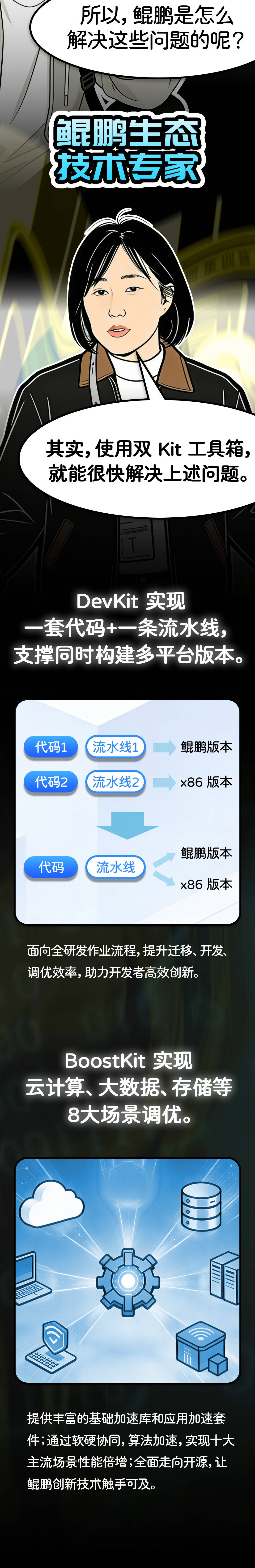 在前段时间的鲲鹏开发者创享日里,李朋亲眼看到,鲲鹏开发者生态,正是这座算力图书馆的「索引地图」:它以鲲鹏处理器为底座锚定架构标准,用openEuler、openGauss等开源语言打通系统壁垒,依靠DevKit、BoostKit等技术搭建高效连接通道,让架构迁移更便利、让算力获取更方便。