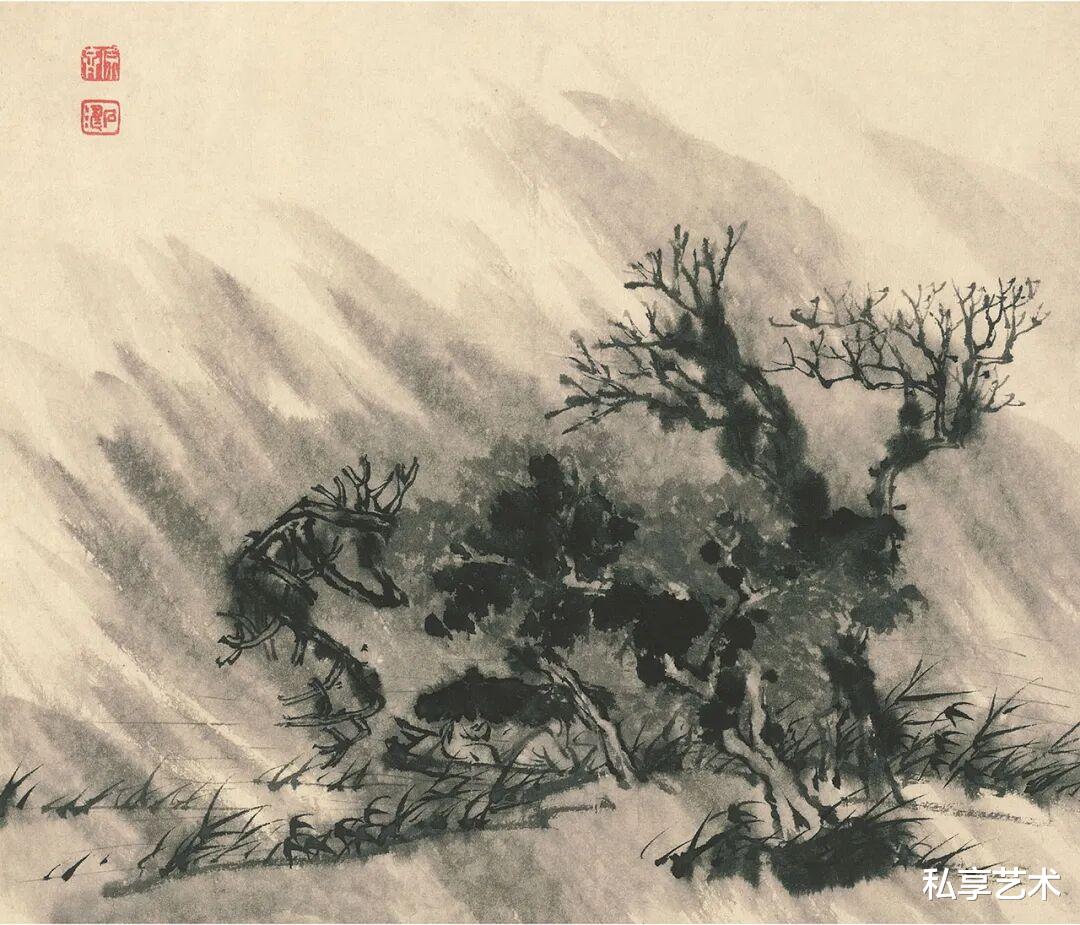 马蒂斯和朋友论画,曾说日本画“武断”,中国画含蓄。“武断”二字是翻译,不知是否准确,以我揣摩,可能是说日本画(南画除外)太用力,太分明。又说中国的画论好,并引用一句“画树当觉其生”。这句话出自石涛,看来塔皮埃斯、巴尔蒂斯回忆巴黎艺术圈流行读石涛《画语录》的事,果然是真的。“画树当觉其生”之“生”,可解读为生命,生机与生长的痕迹。在画法上,则是笔笔生发,一生二,二生三,三生万物。笔笔生发,因而是天成。所以,书法和画是一种发生学,譬如流水,随物赋形,一一自然,无有美丑。从“画树当觉其生”此语,可知绘画的第一要义是“动”,而动的形态也很多,有风动,有万物生长的那种动,又有笔笔生发与节奏快慢的那种动,还有构图的势态。讲究生动,又要在动中求静,古画的静是静气,而非静止,就像树的生长是静静的。
