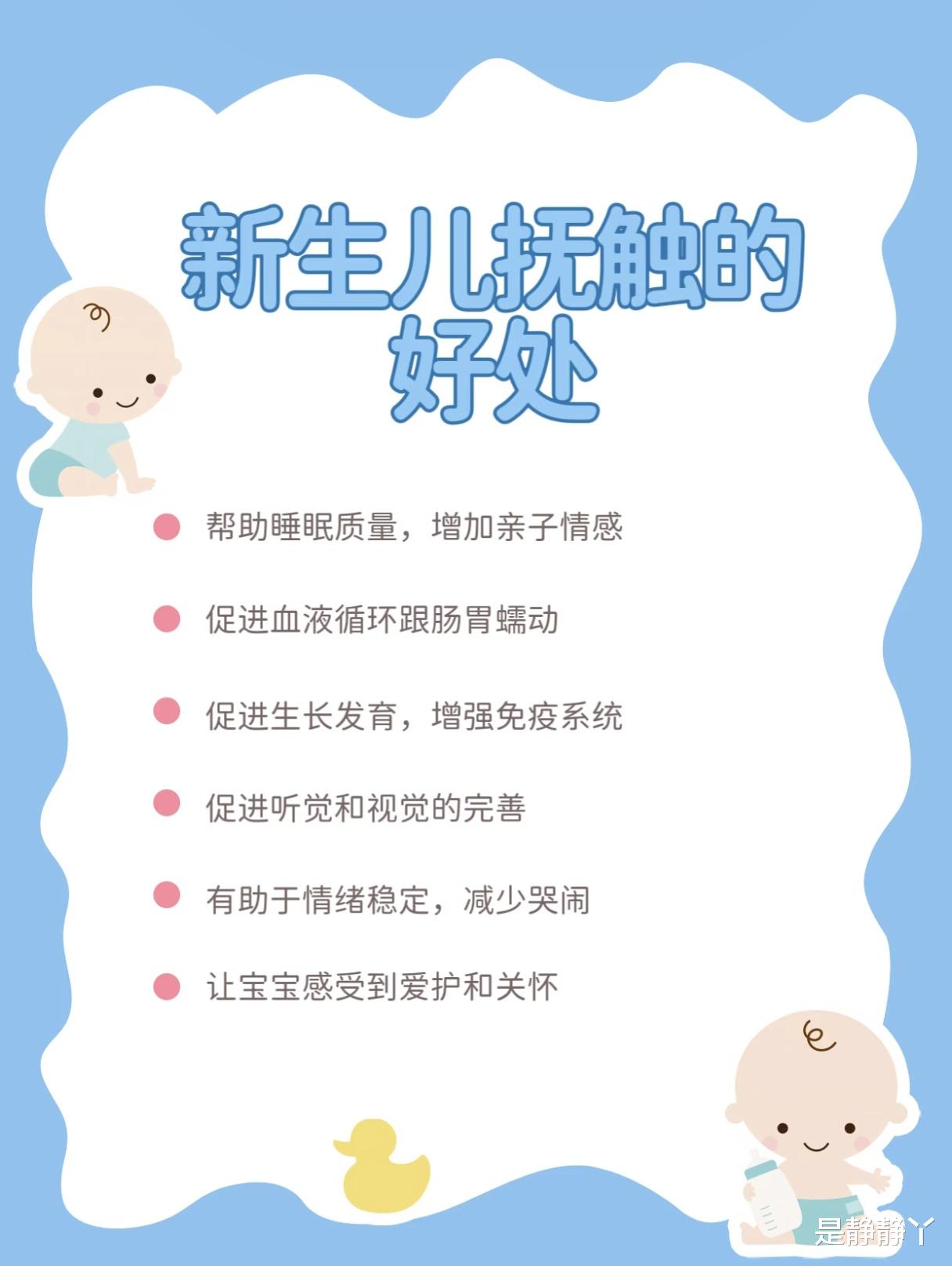 说了这么多“不要”,那我们应该做什么呢?答案就是:多抚触。抚触不是简单的摸摸,而是一种充满爱意的交流。当你用温暖的手掌,轻轻地抚摸宝宝的背部、手臂、小腿时,他能感受到你的爱和安全感。这不仅能帮助他睡得更香,减少哭闹,还能促进血液循环和肠胃蠕动,让他长得更壮实。更重要的是,抚触能刺激宝宝的大脑发育,帮助他的听觉和视觉更好地完善,让他更聪明、更开朗。