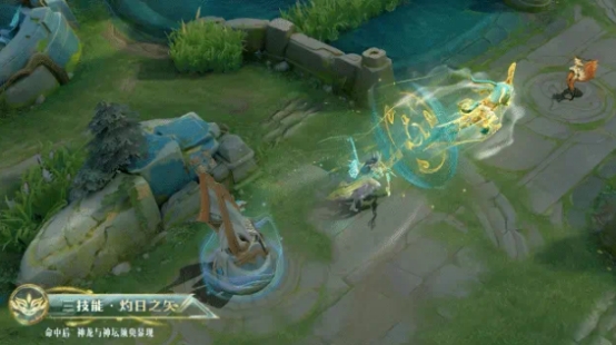 这款皮肤可以说是排面拉满,建模用了青铜神树的青金配色,高级感拉满,普攻射出的都是神树枝干,最绝的是大招 —— 召唤一条青铜神龙盘旋战场,对手看了都得愣两秒。