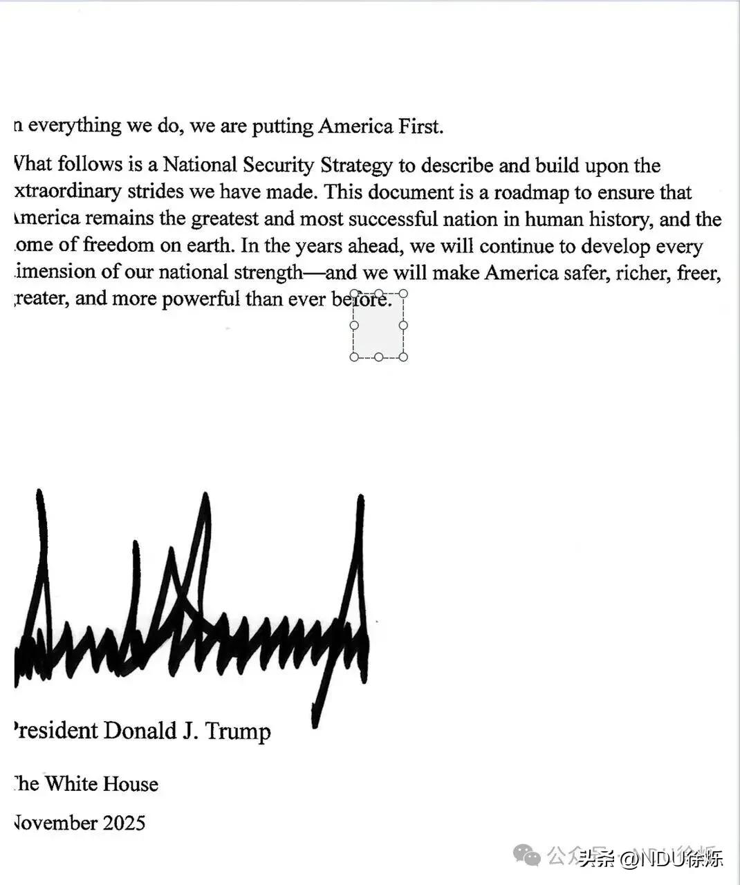 在我们所做的每一件事中,我们都将美国放在首位。接下来这份《国家安全战略》,旨在阐述并巩固我们已取得的非凡进展。本文件是一份路线图,确保美国仍然是人类历史上最伟大、最成功、最自由的国家,在未来的岁月里,我们将持续拓展国家实力的每一个维度,我们将使美国比以往任何时候都更安全、更富裕、更自由、更强大。