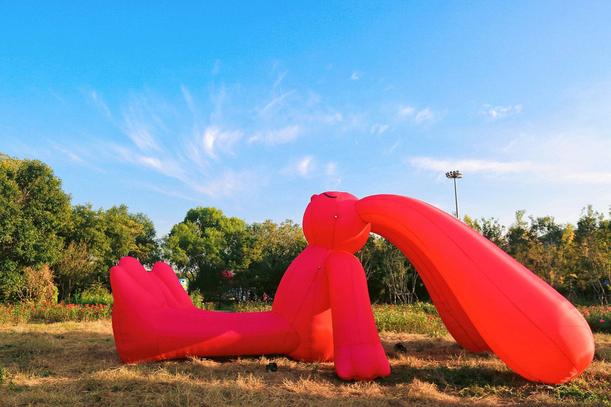 公园内的亲子区有超大面积的草坪,正是秋高气爽的好时节,野餐垫随地一铺,孩子尽情奔跑,大人晒着太阳聊着天,简直不要太惬意。