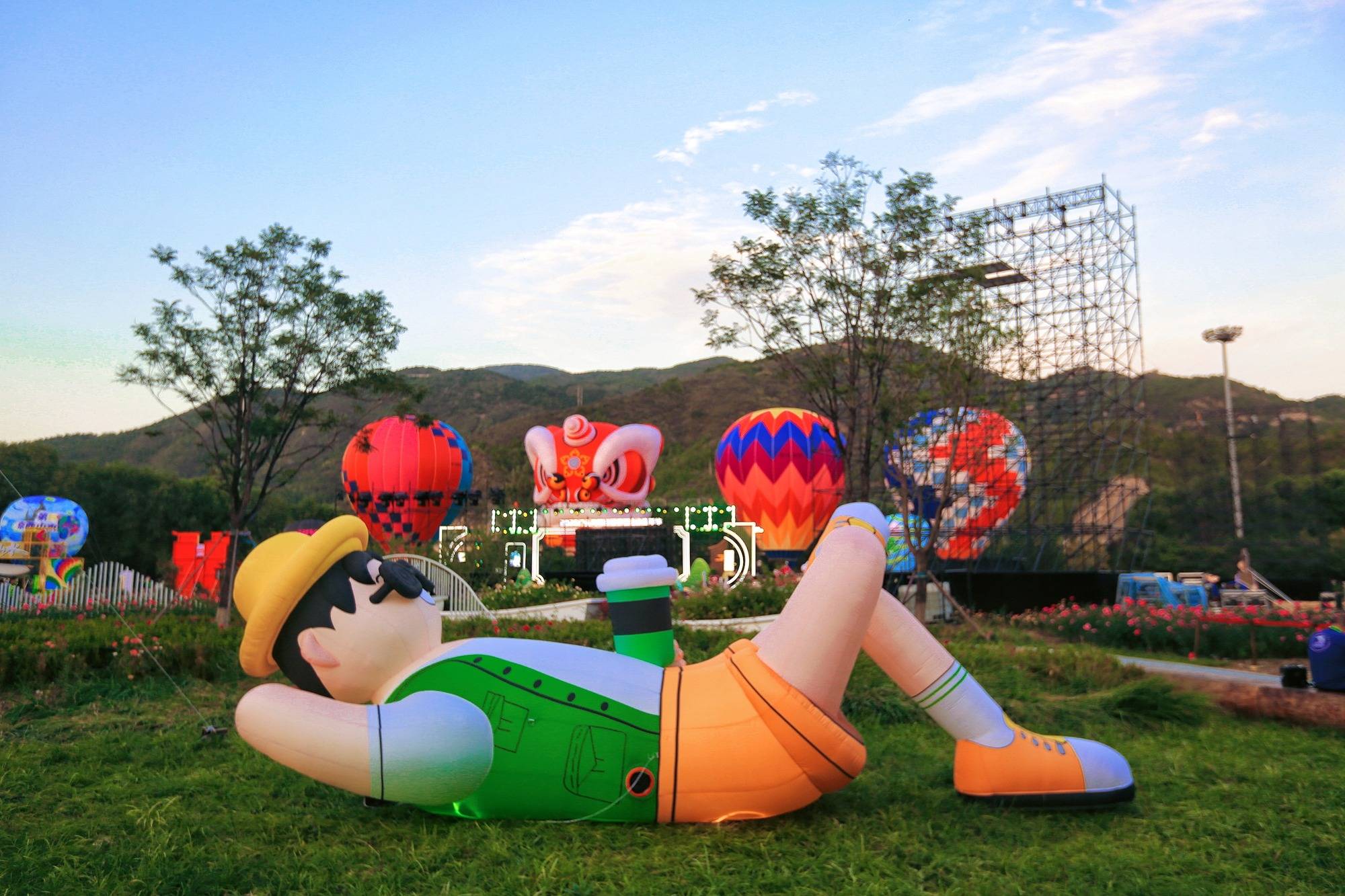 国庆期间公园将举办北京首个热气球潮玩生活艺术节,白天的热气球凌空览胜必体验。热气球腾空而起的一刻,永定河百里山水画廊尽收眼底,秀美风光在脚下铺陈开,浪漫程度直接拉满。