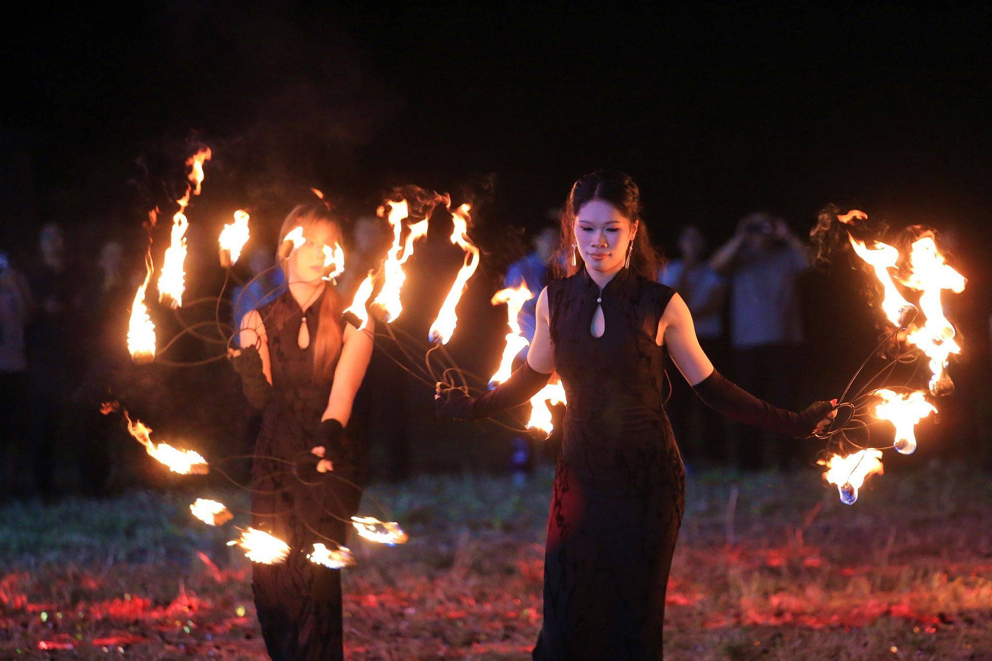 夜晚的公园有了灯光和活动的加持丝毫不比白天逊色。电音DJ炸翻山谷,火舞溅起漫天星火,精彩节目轮番登场,《沧海一生笑》剑舞划破夜空,《贵妃醉酒》水袖翩翩,一秒穿越大唐盛景,沉浸式体验直接封神。