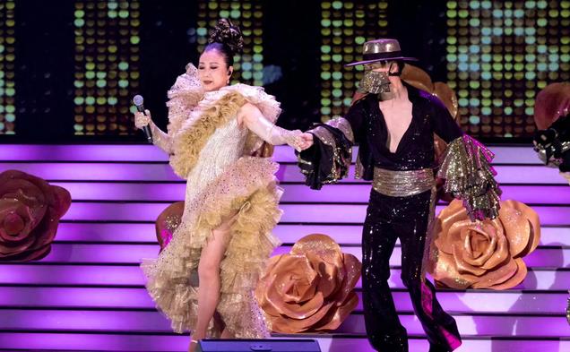 随后汪阿姐以中性穿西装的造型再现台上,大荧幕展现汪阿姐过往拍摄剧集的多幅造型照,