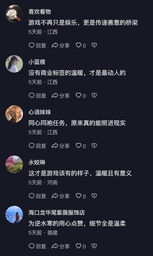 每一次公益活动,《逆水寒》手游都是在认真完成之后,才向玩家们进行“报备”。这些善举可能并没有那么声势浩大惊天动地,但却极为温暖人心。它始终坚守着自己所认可的侠义精神,关注孩童,代表玩家,为“玩游戏"这件事进行证明。有玩家表示:这游戏总是努力在一个被污名化的行业中,挣扎着发点光……