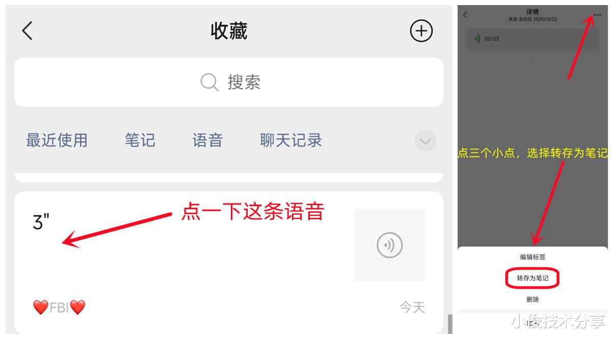 咱们返回到收藏里面,找到转为笔记的这条语音,点进去,你看到没有?这个就是带笔记的标志,然后点一下右上角的3个小点,接着咱们点一下转发给好友,就可以发给好友了,以及分享到朋友圈,就可以把这条语音发布到朋友圈了。怎么样?朋友们,是不是很实用,你们一定要把它学会了哈,以后一定能帮上你的大忙。
