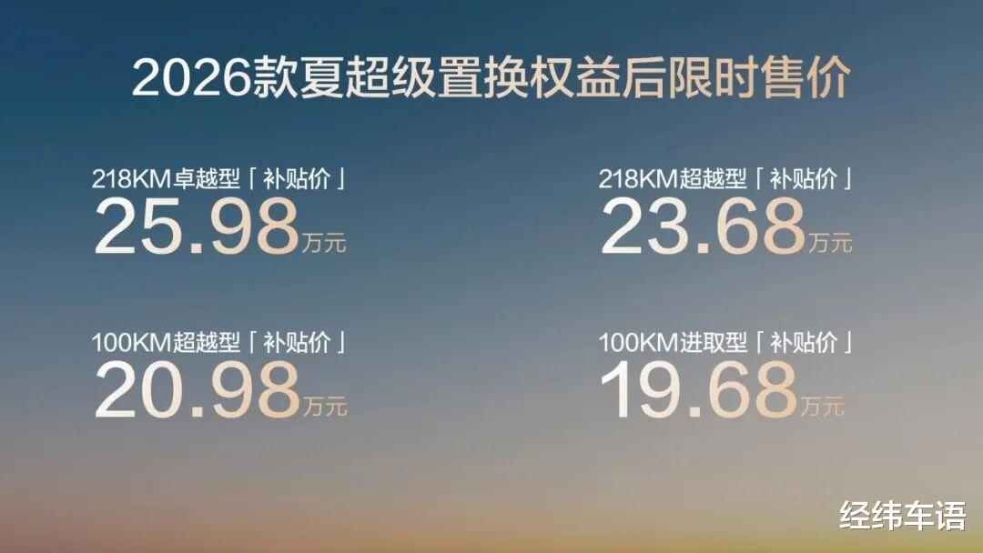 2026 款夏从颜值、舒享、智能、续航、安全等多维度全面升级,以高价值,为更多品质家庭带来更智能、更安全、更舒适的 “头等舱级” 出行体验。