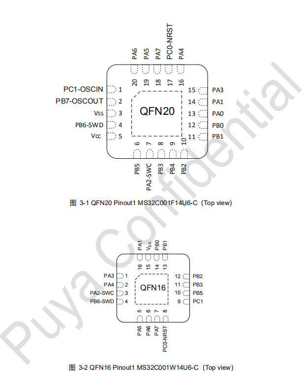 MS32C001单片机是一颗高性价比的入门级微控制器,采用了高性能的 32 位 ARM® Cortex®-M0+ 内核,宽电压工作范围。芯片嵌入18 KB Flash 和 1.5 KB SRAM 存储器,最高工作频率 24 MHz。有QFN16,QFN20两种封装类型可选。芯片集成了1 路 12 位 ADC,2 个 16 位定时器。