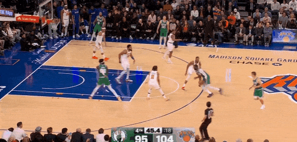 NBA常规赛,凯尔特人对阵尼克斯的比赛正在进行中。