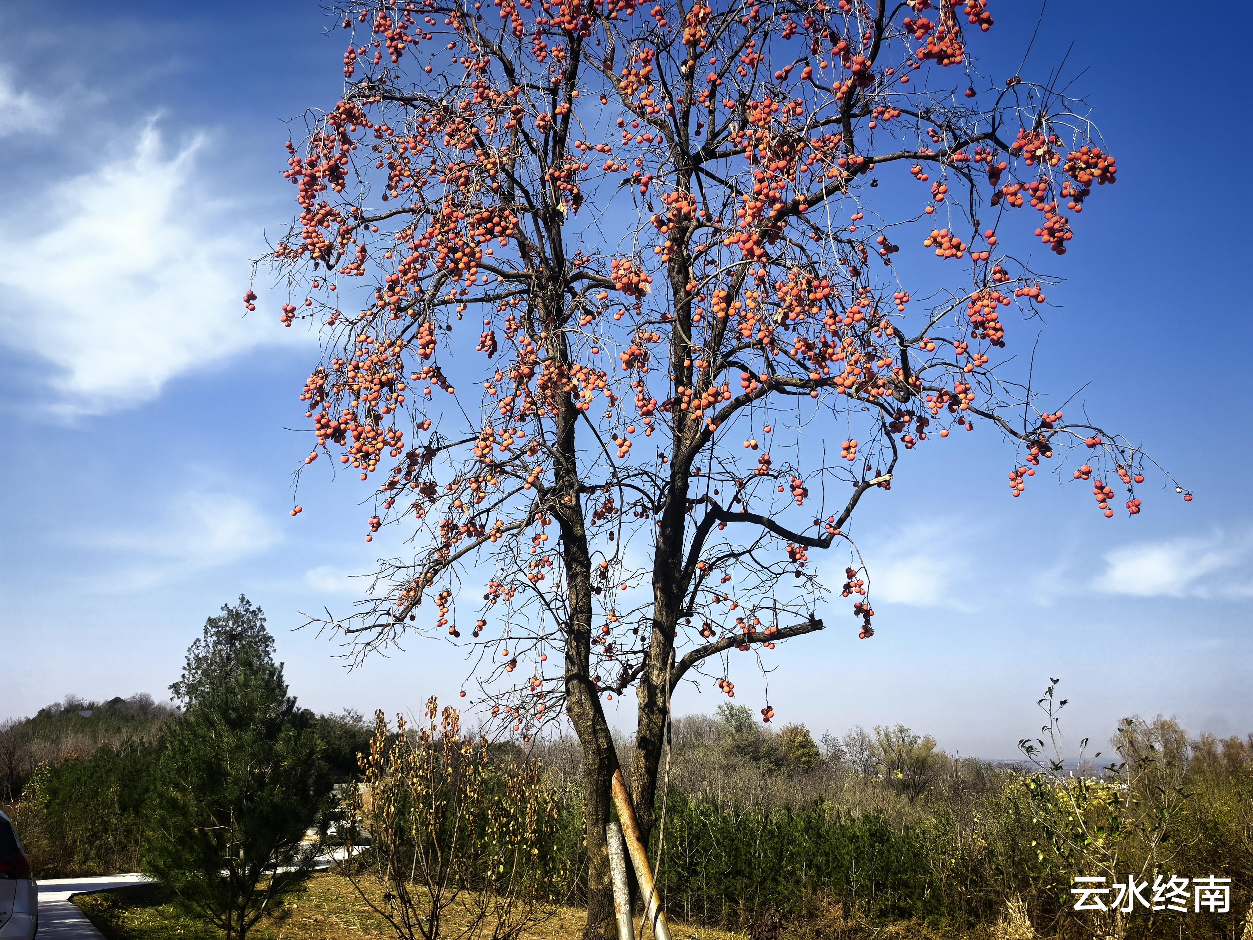 在山梁上,平展展的一个院子,院子里一棵红彤彤的柿子树,我就坐在柿子树下的藤椅上,晒着暖暖,望着远处的山峦。