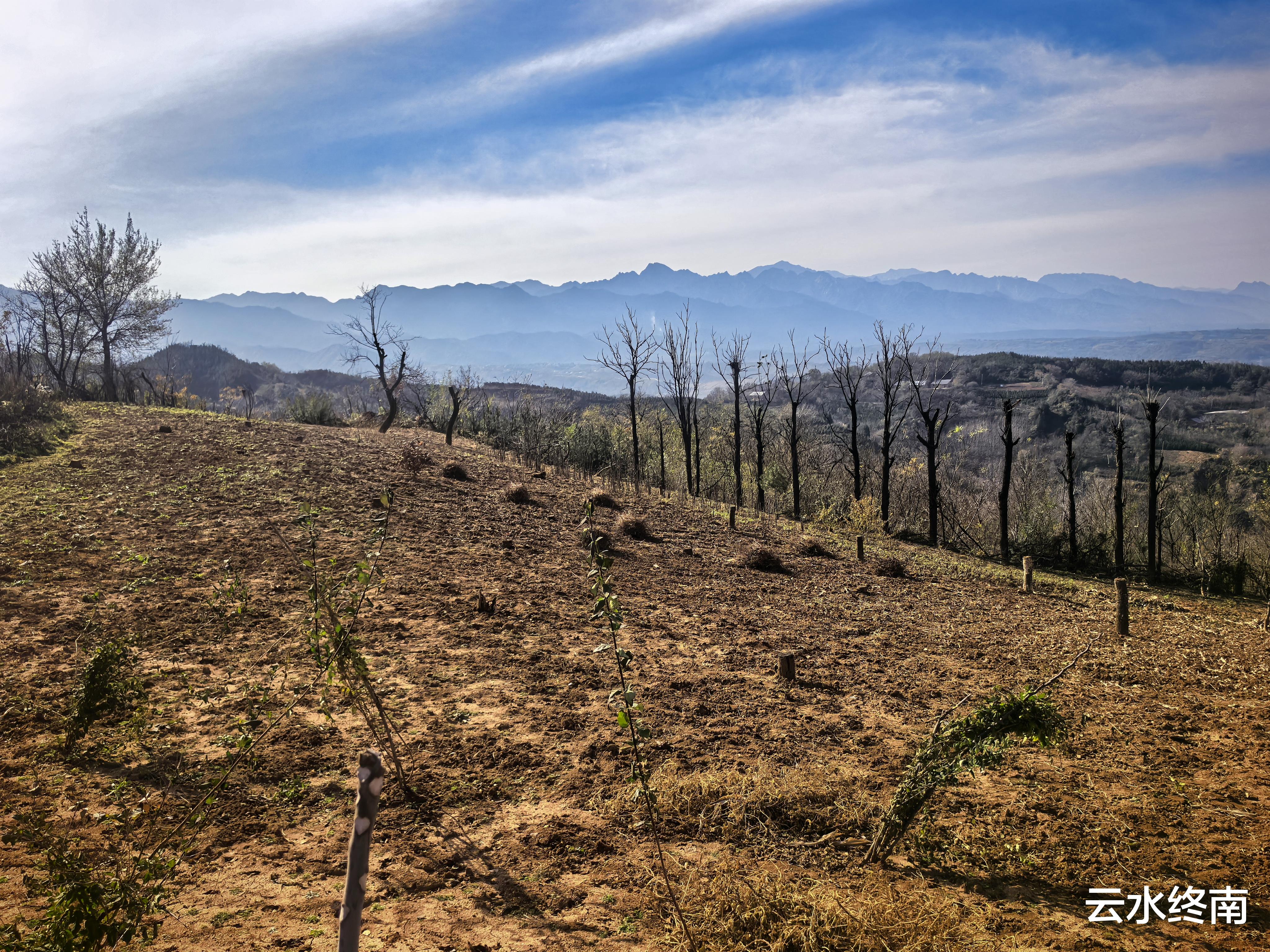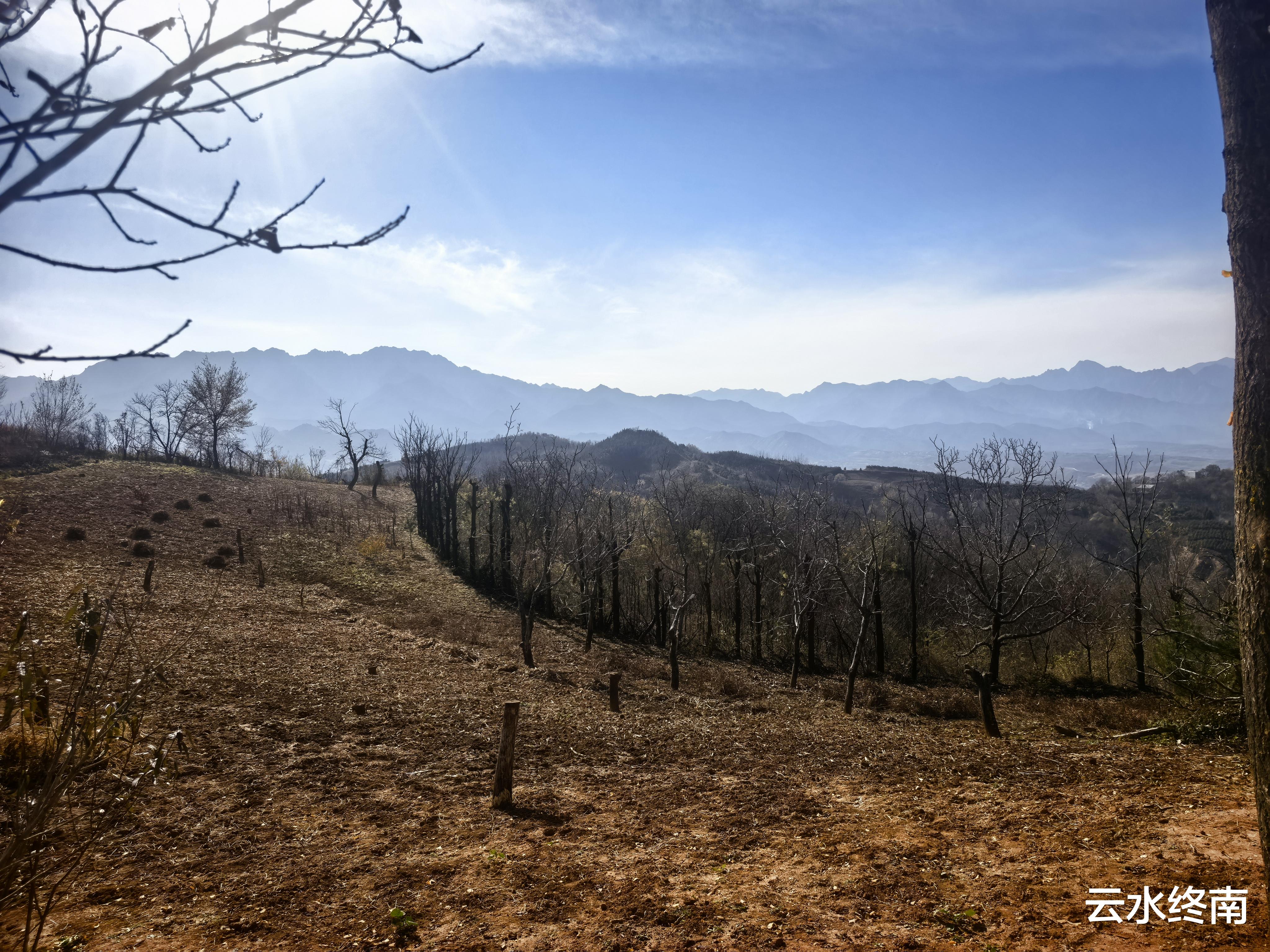 这里属于秦岭山脉向关中平原的过渡地方,虽然有起伏,但整体比较平坦,坡地上还种着庄稼。到了这个季节,寒林萧瑟,还能望见远处高大的山脉。
