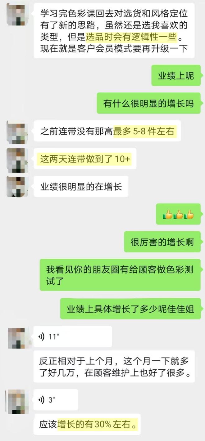 从一开始的怀疑,到沉下心上完色彩搭配课后把「看客拿衣」「形象诊断」等方法一步步落地,灿灿才发现专业对业绩的提升有多大: