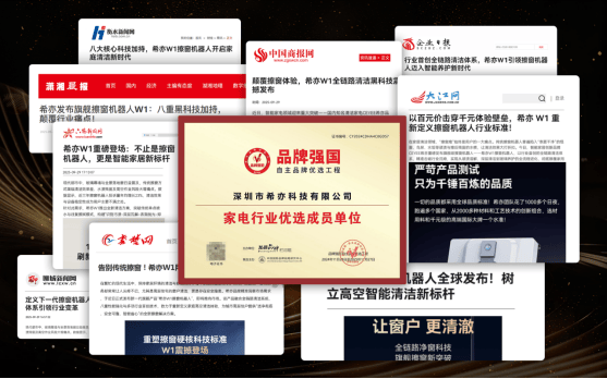 此外,希亦 W1 凭借硬核产品力罕见获得央视及多家地方主流媒体集中报道与展播,在防坠可靠性、清洁均匀度、玻璃保护性三大核心性能维度均达到行业领先水准。下图为CEYEE希亦品牌获多家地方主流媒体权威报道图: