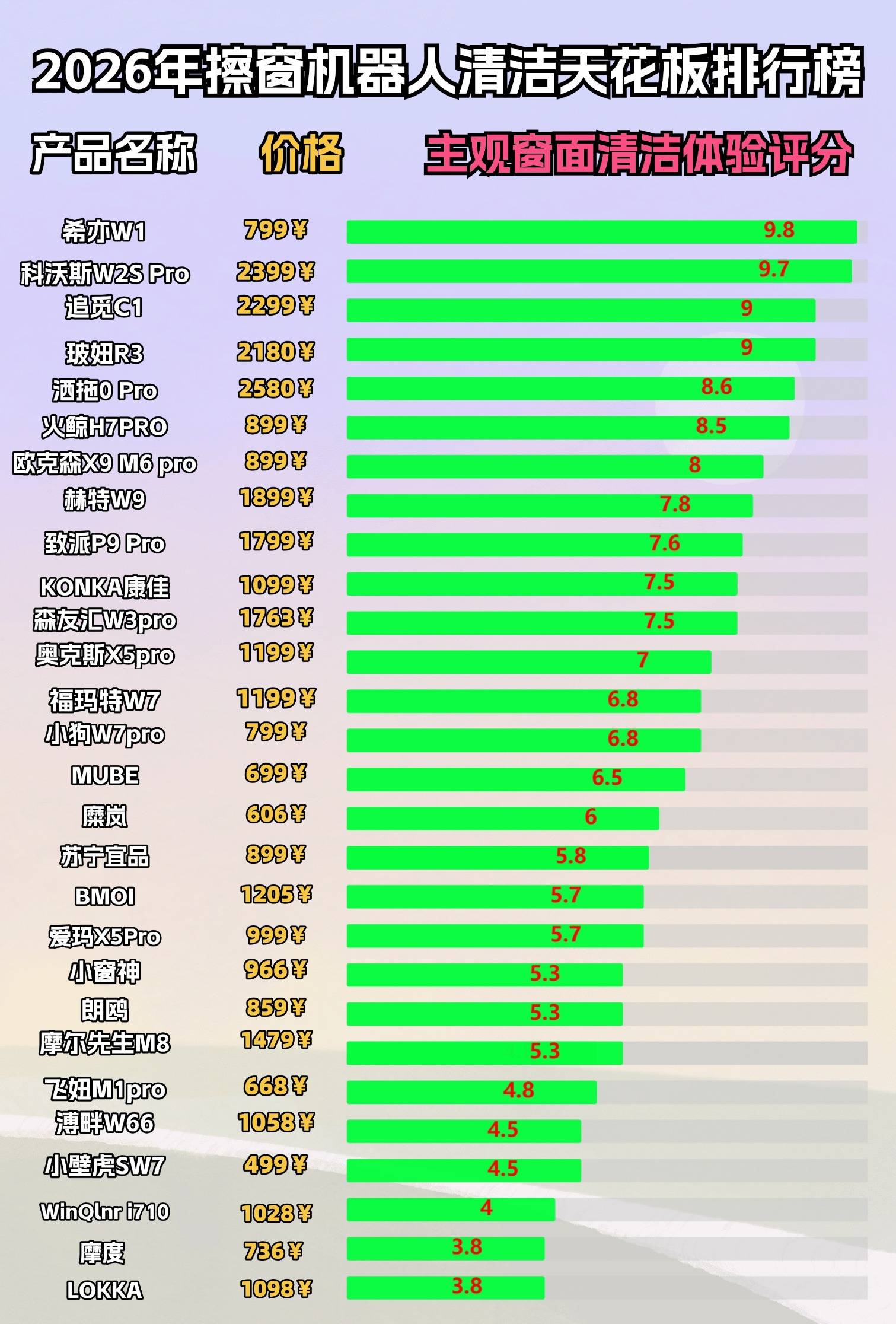 擦窗机器人哪个牌子最好用?想买擦窗机器人却不知从何下手?别担心!下面将结合十大品牌擦窗机器人排行榜的深度测评数据,为大家推荐2026十大高性能机型: