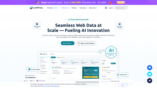拥有超过9000万个合规住宅IP资源,覆盖200多个国家和地区以及195个以上城市。平台依托5200台高速服务器,提供动态服务、静态服务、ISP服务、无限流量服务以及定制化企业服务。网络可用率达到99.5%,静态住宅服务的可用率达到99.9%。支持精确到国家、州、城市级别的位置筛选,不限制端口数量。特别强调了对AI和大型语言模型数据训练的支持,提供秒级交付的API接口和子账号管理功能。适合数据抓取、广告验证、SEO监控以及AI数据训练等场景。