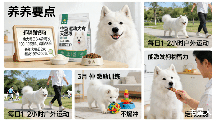 饲养萨摩耶犬的核心在于“满足其精力需求,呵护其特殊被毛”。它们精力旺盛、被毛厚重,在饮食、运动、毛发护理等方面有独特要求,需重点关注“营养供给、运动释放、毛发管理”三大核心,才能让这位“雪域天使”保持健康活力。