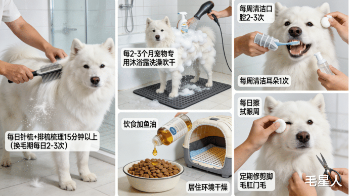 萨摩耶犬平均寿命为12-14年,相较于其他中型犬更为长寿,但由于其特殊的被毛结构和遗传特性,也存在一些特定健康风险,日常护理需重点关注“毛发护理、皮肤健康、遗传疾病预防”三大核心,为其健康保驾护航。