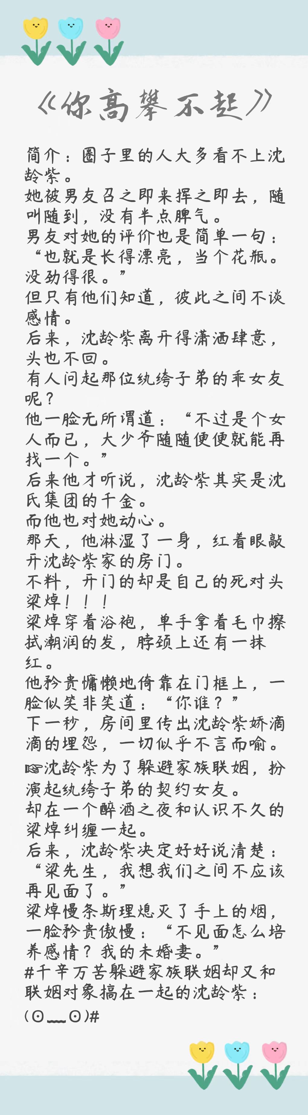 书名:你高攀不起作者:银八状态:完结类型:其他男主 梁焯 X 女主 沈龄紫
