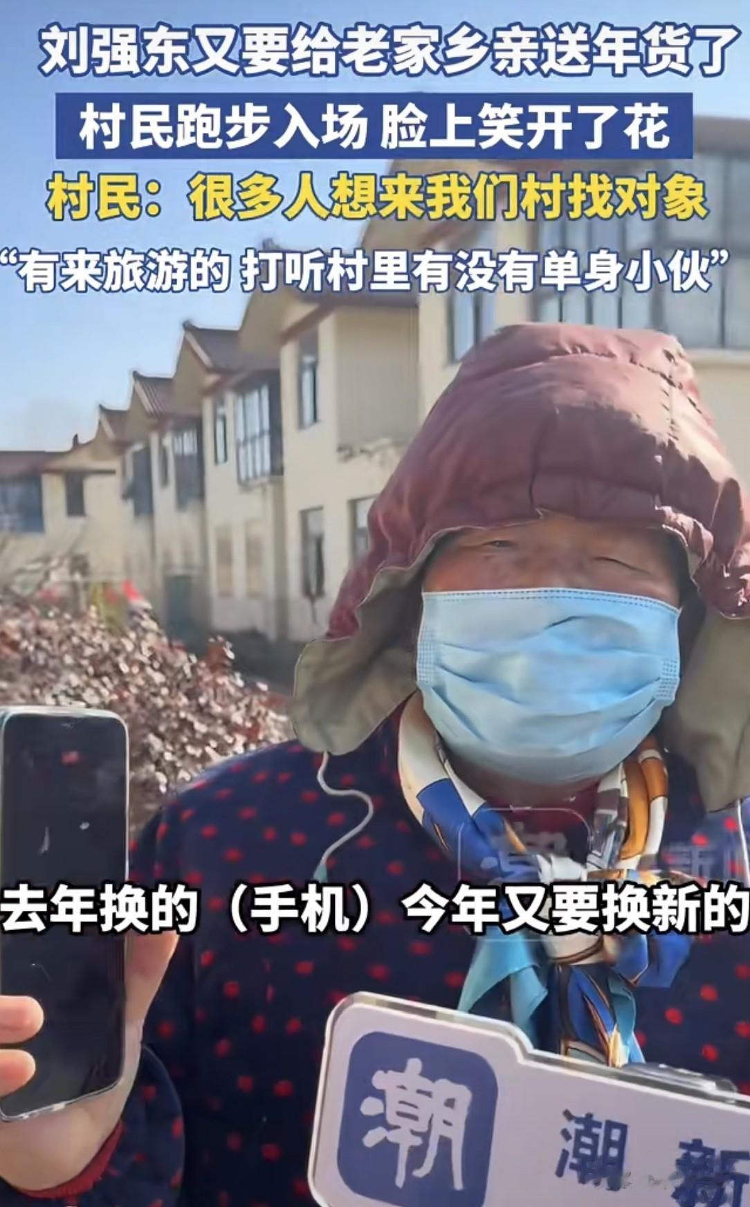 东哥的爸妈也早早从北京回了老家,老两口特别接地气,见人就热情打招呼,村民们见到二老,都围上去道谢,说多亏了他们教出这么有良心的孩子。