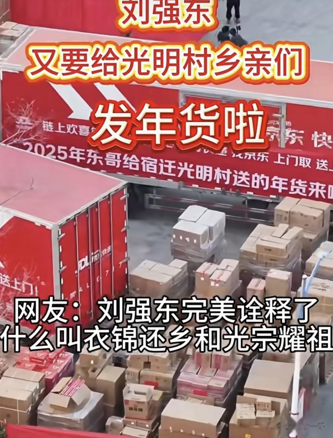 1月29日,宿迁光明村彻底被年味和喜悦填满!东哥为老家准备的福利太硬核,3000多万的年货物资全运到了,再加上1500万现金红包,总共4500多万的心意,让全村1500多户人家个个乐开花。这已经是东哥连续12年给乡亲发福利了,每年都是上千万起步,这份坚持,真的太暖心了