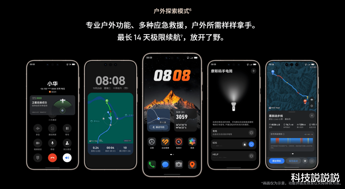 在用户日益关注的隐私安全与户外运动等特殊场景,华为Mate 80系列同样带来了体验升维。其中,防窥保护2.0能主动隐藏应用内容,加密分享2.0可实现文件指定用户、限次查看,亲情防诈功能则为家人筑起远程守护屏障,让用户真正掌握隐私主动权。更令人眼前一亮的,是行业首发的“户外探索模式”。其整合了花瓣地图的专业线路、北斗卫星天气查询、最远覆盖7公里的有网无网融合对讲功能,以及离线救援知识手册等实用工具,就像是一位智能可靠的“旅行伙伴”,将旗舰手机的可靠边界从城市拓展至旷野。