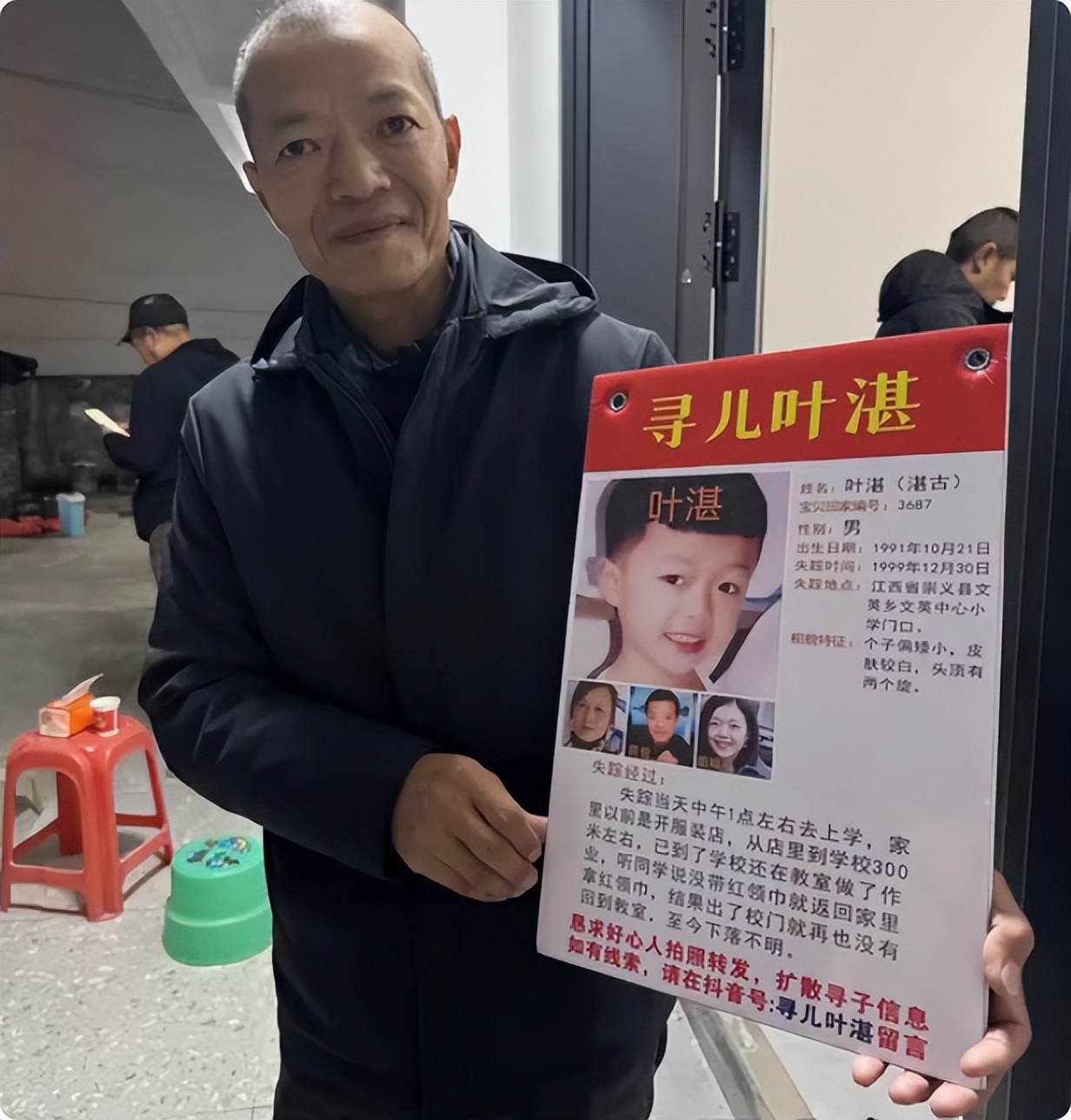 父亲梁三寿用力举着寻人牌向过往游客询问:“见过我的儿子吗?他身高很高,耳朵后面有一颗痣……”并且他多次向梁志辉这边看过,却没能认出已经成年的儿子。