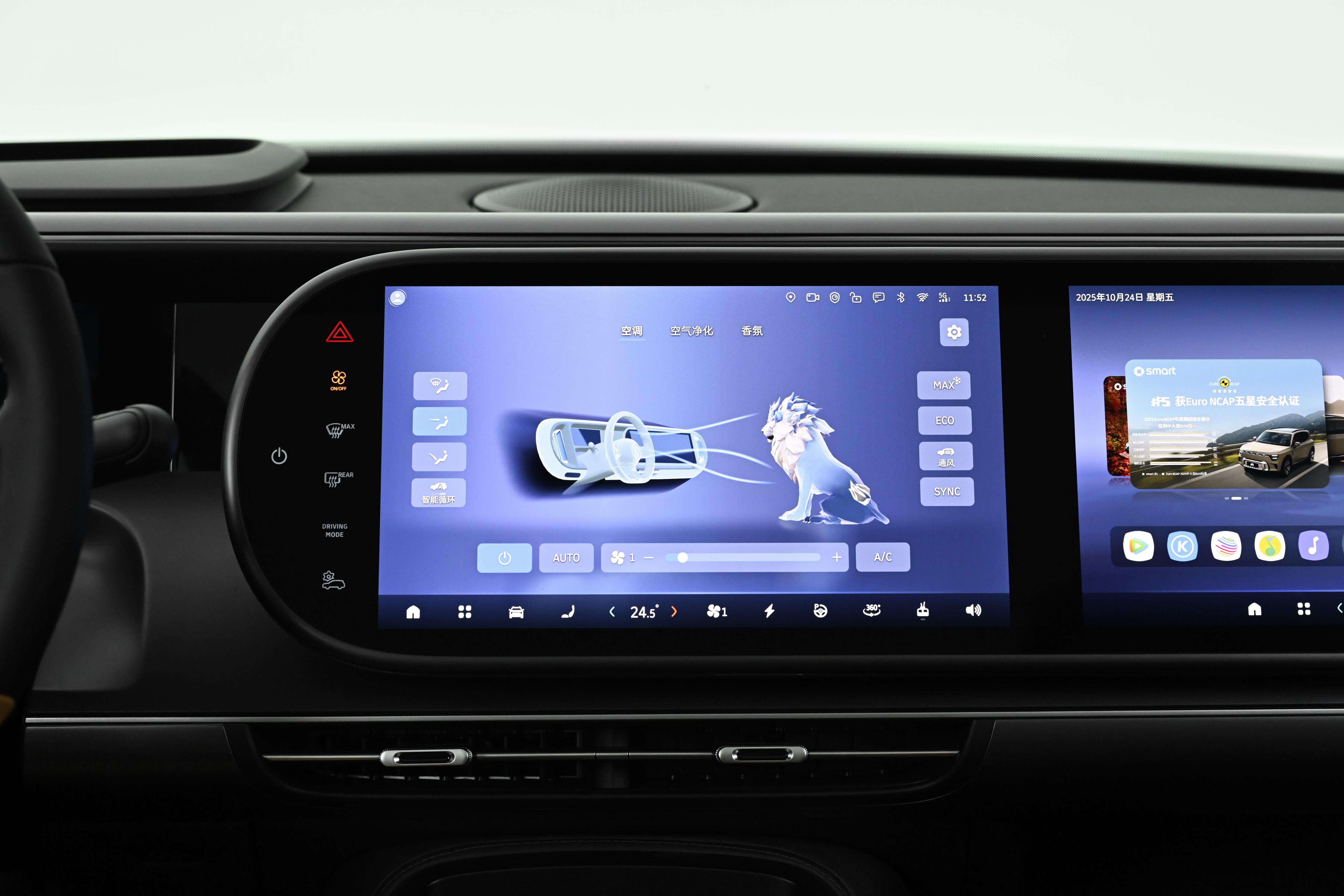 有不少车友和我一样,对于smart的印象,还是那种小精致款,看见实车时,才发现这车可一点不小!车长4705毫米,轴距2900毫米,妥妥滴中型SUV,采用方方正正的方盒子造型,线条利落还带点圆润感,大气又灵动,封闭式设计的前脸搭配主动闭合式进气格栅,过年天冷,有了这配置也可以快速暖车。要说吸睛的还是那个时空胶囊贯穿式LED大灯,328颗灯珠组成胶囊样式的光源,白天亮着辨识度拉满,晚上还能智 能调节照明范围,过年回家赶夜路也更踏实安心,车身侧面,无框车门搭配隐藏式门把手,精致美观且充满科技感。那个19英寸宙巡低风阻轮毂,半封闭的设计可不光好看,还能降低能耗,搭配悬浮式的车顶,更显灵动。C柱的圆形smart标和D柱发光LOGO,小细节里藏满了精致感。车尾部分,与前脸巧妙呼应,超红光立体悬浮贯穿尾灯里嵌了196颗灯珠,也带胶囊光源,夜间点亮还有动态效果,隐藏式排气布局显得干净利落,外观配色上选星漩蓝就挺合适,是那种温润的深海蓝调,低调又有高级感,春节开回家,洋气又不张扬,亲朋好友准夸好看,那排面给足了!