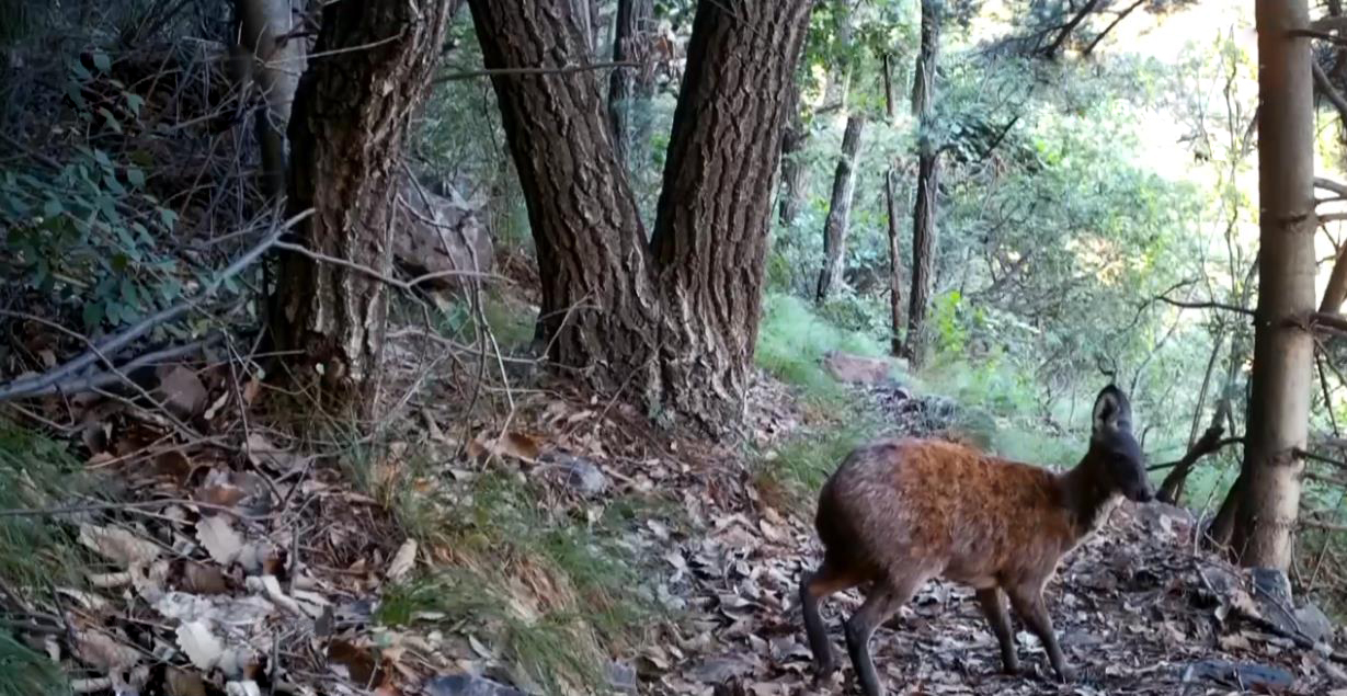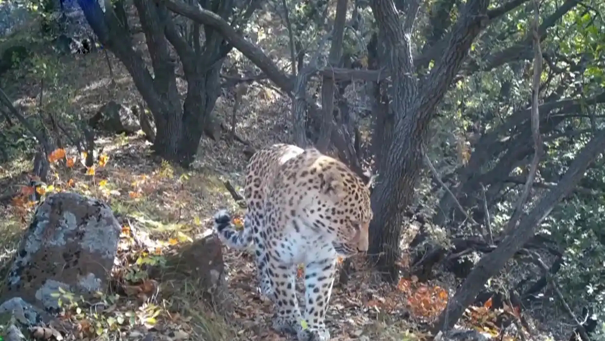 近日,架设在山西省晋城市历山国家级自然保护区内的红外相机,又成功拍到了华北豹的身影。画面中一只体型硕大,肌肉壮实的华北豹,行走在一处山脊上,从容地巡视着自己的领地,看上去十分威武霸气,宛如一头小型的老虎一般。