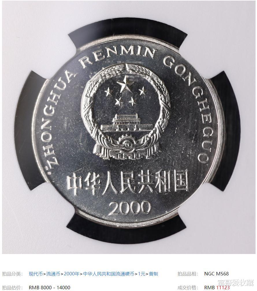 上面这枚2000年牡丹1元,估价就达到了1.4万,而最后却只拍出了1.1万多。