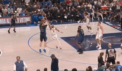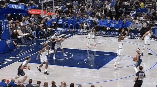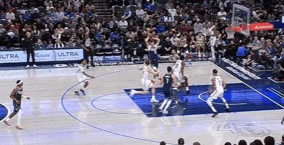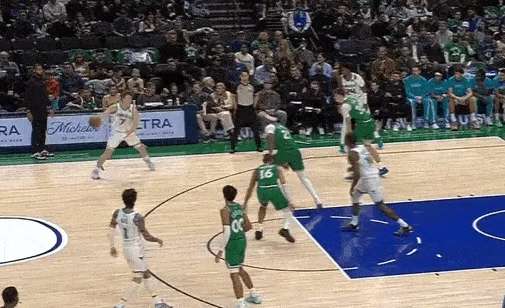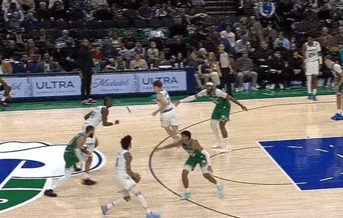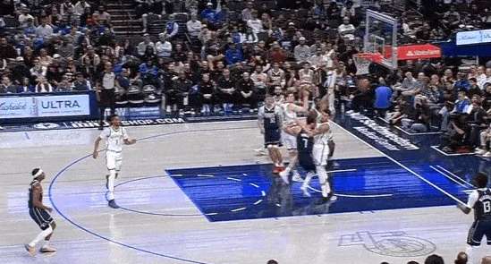 黄蜂早期进攻阶段、抓独行侠防守立足未稳发动的战术配合:三球持球刚过半场立即和迪亚巴特发动“Drag Screen”配合,与此同时右路跟进的克尼普尔迅速前来执行“Shallow Cut”空手移动至左翼,