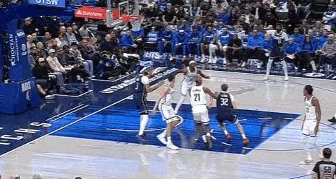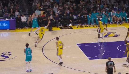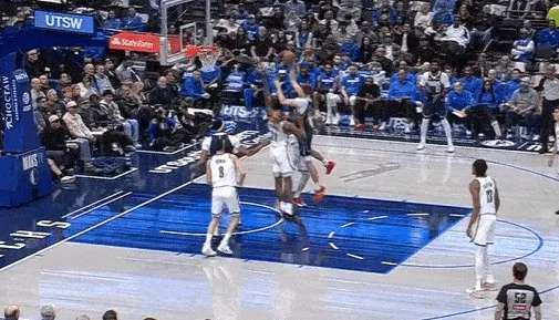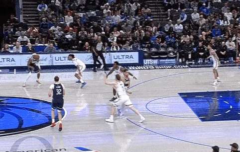 转换进攻回合弗拉格见小内姆难以传给内线要到错位的浓眉,迅速空手上提接应,