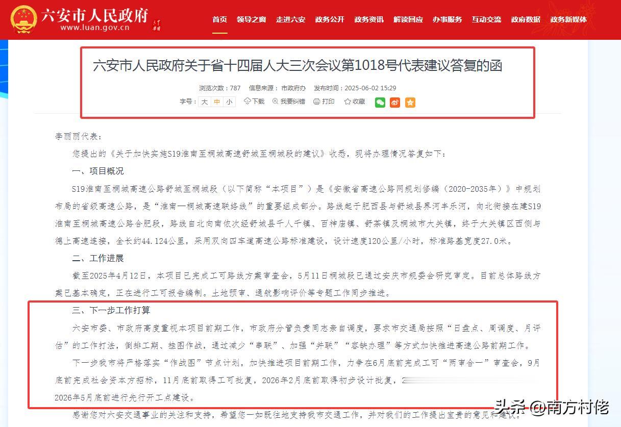 首先,在2025年6月2日,根据《六安市人民政府关于省十四届人大三次会议第1018号代表建议答复的函》,里面就排出了本项目的具体工作计划节点,主要如下: