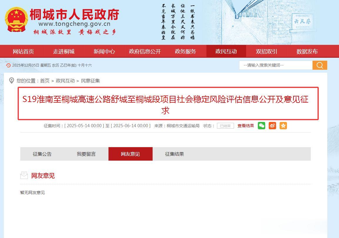为了加快S19淮南至桐城高速公路舒城至桐城段项目的建设,舒城县和桐城市也充分联动,他们均在各自官网上对该项目的社会稳定风险分析内容进行了公示,征求社会公众意见;有网友对本项目的建设也提出了自己的看法,认为: