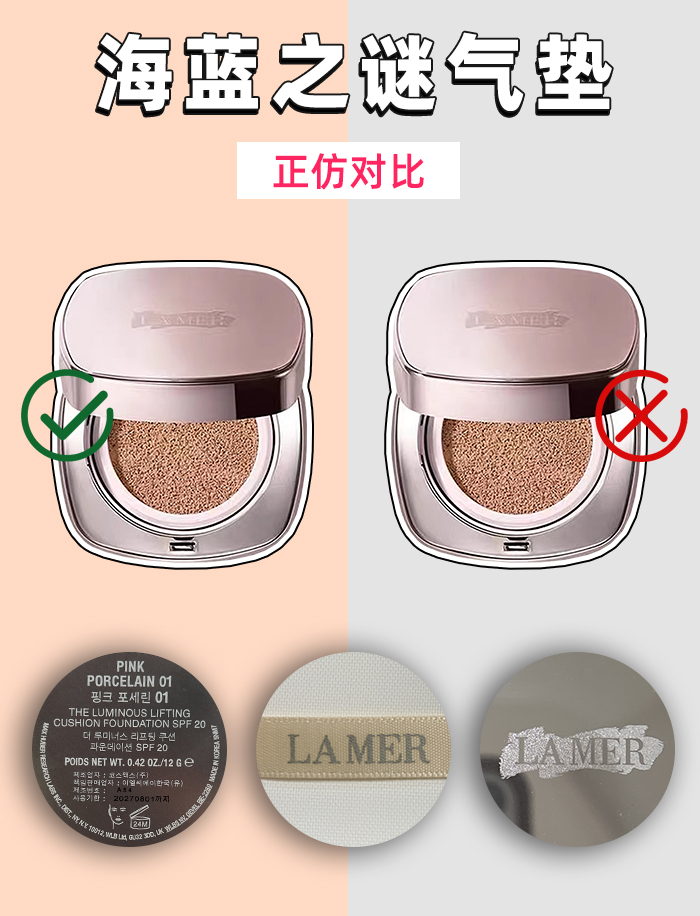海蓝之谜气垫真假鉴别对比以下对比仅基于个人看法及相关了解不排除个别鉴别点存在版本差异!!只有此版本对比,其他版本仅供参考
