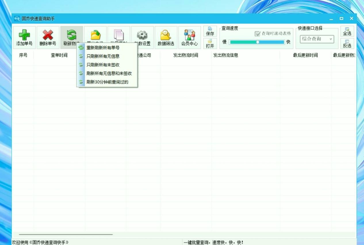 快递批量查询大师:界面简洁,但功能按钮标注不清晰,新手上手耗时约10分钟,无操作引导,试用期间无广告,但查单速度较慢,100单查询需20秒,效率偏低。